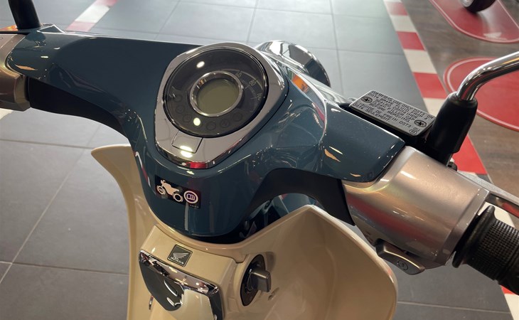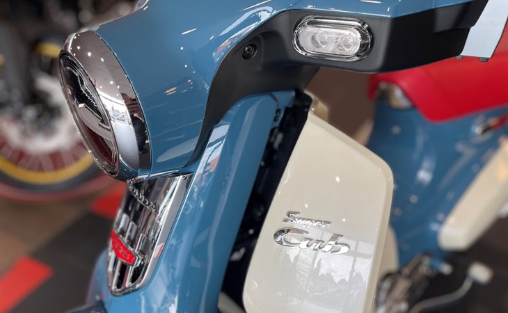 Die aufrechte Fahrposition sorgt für eine hervorragende Rundumsicht und der Sitz aus hochdichtem PU-Schaum sowie der Lenker mit Gummigriffen bieten angenehmen Komfort. Der luftgekühlte Motor mit Kraftstoffeinspritzung entfaltet seine zusätzliche Leistung mit sanfter Unaufgeregtheit und niedrigem Verbrauch. Wie beim Originalmodell erleichtert die automatische Fliehkraftkupplung die Schaltung des Vierganggetriebes. Der Stahlrohrrahmen, die Teleskop-Gabel, die beiden Stoßdämpfer hinten (jeweils mit leistungsstärkeren Federn), die 17-Zoll-Aluminiumgussfelgen sowie schlauchlose Reifen sorgen für ein zuverlässiges Handling. Die Super Cub C125 ist mit hochwertigen Extras wie kompletter LED-Beleuchtung und Honda SMART Key ausgestattet. Für mehr Flexibilität sorgt der vormontierte Soziussitz.