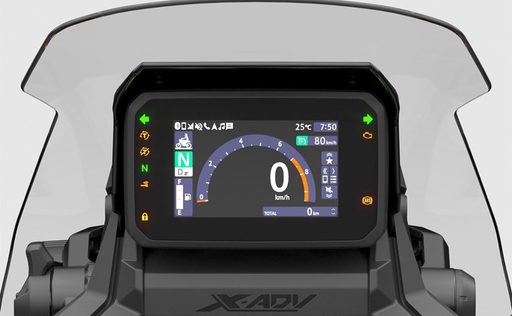 Die scharfe neue Frontverkleidung strahlt den Stil eines Premium-SUVs aus, während die LED-Doppelscheinwerfer breite Strahlen nach vorne werfen. Die Blinker sind jetzt in das Tagfahrlicht integriert, was zu einem sauberen und gut sichtbaren Erscheinungsbild führt und die Sichtbarkeit und Sicherheit für Fußgänger und andere Verkehrsteilnehmer deutlich verbessert. Aber beim X-ADV ist die Funktion genauso wichtig wie die Form. Praktische Ausstattungsmerkmale wie der Stauraum unter dem Sitz (mit heller Innenbeleuchtung und raffinierter Aufteilung), das leicht zugängliche Handschuhfach vorn, der tiefe Durchstieg und der in 5 Stufen höhenverstellbare Windschild machen das Leben unterwegs zu einem täglichen Vergnügen.